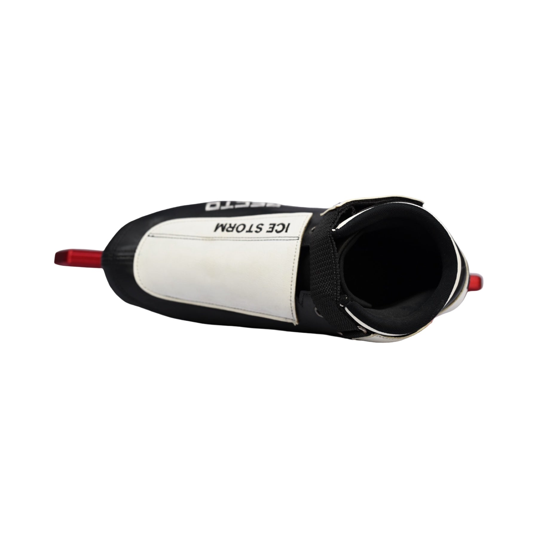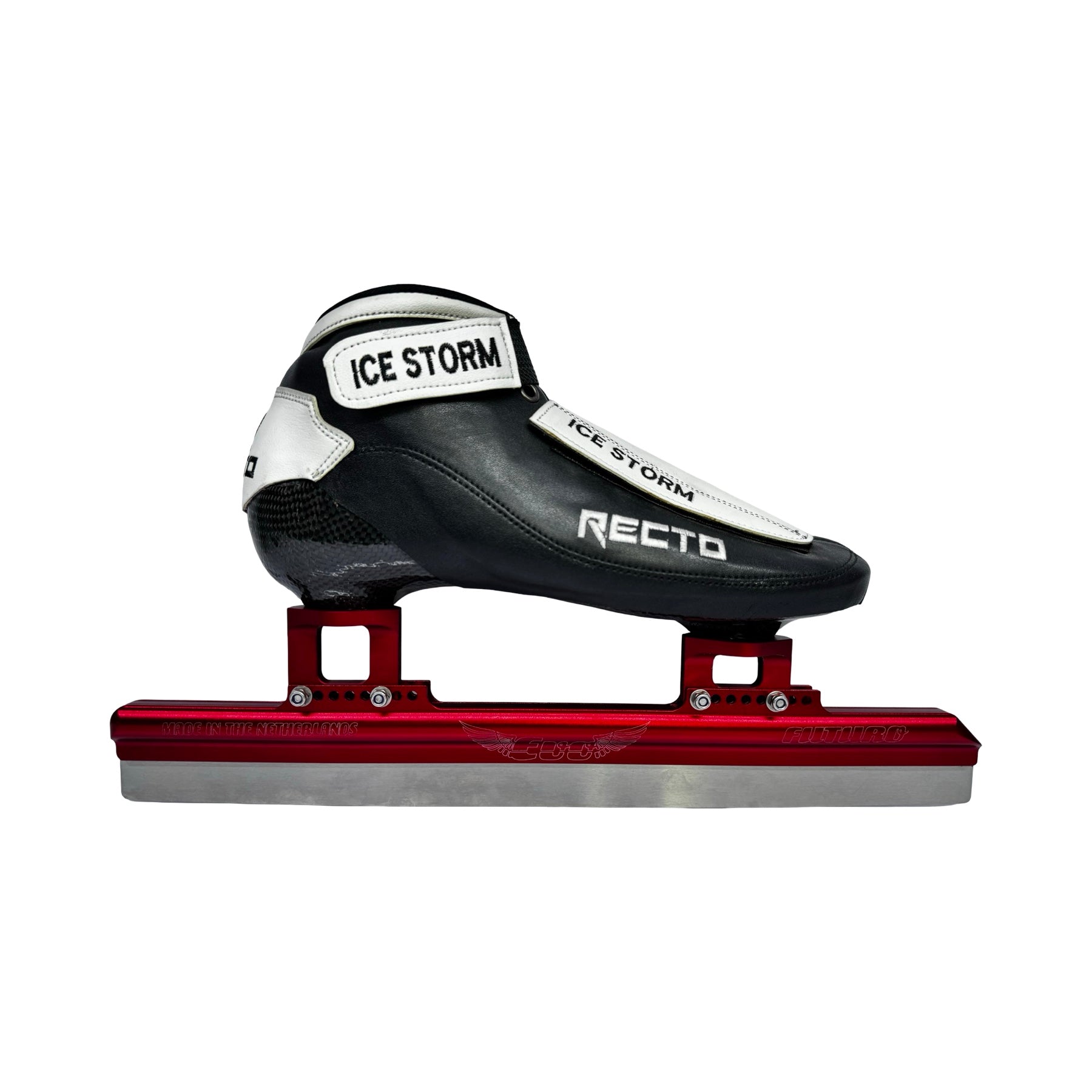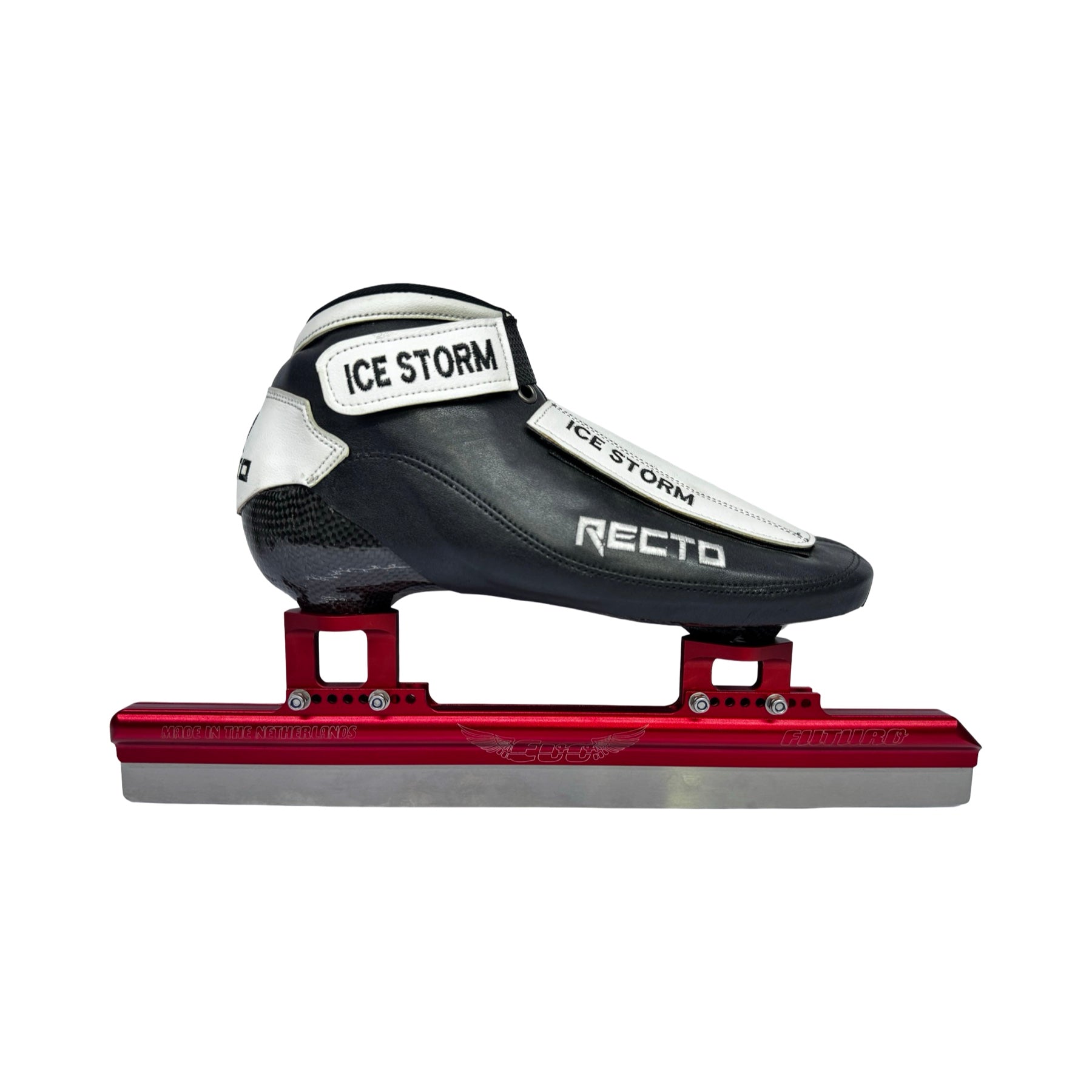 Unleash your speed with the Recto Ice Storm Short Track Boot, engineered for champions. Crafted from 100% pure carbon, these boots offer unparalleled lightweight performance and durability, giving you the edge on the ice. The 165mm mounting ensures a perfect fit for optimal power transfer, while the innovative high ankle design provides superior support and stability during your most intense races. Featuring a sleek lace cover made from premium Italian velcro.