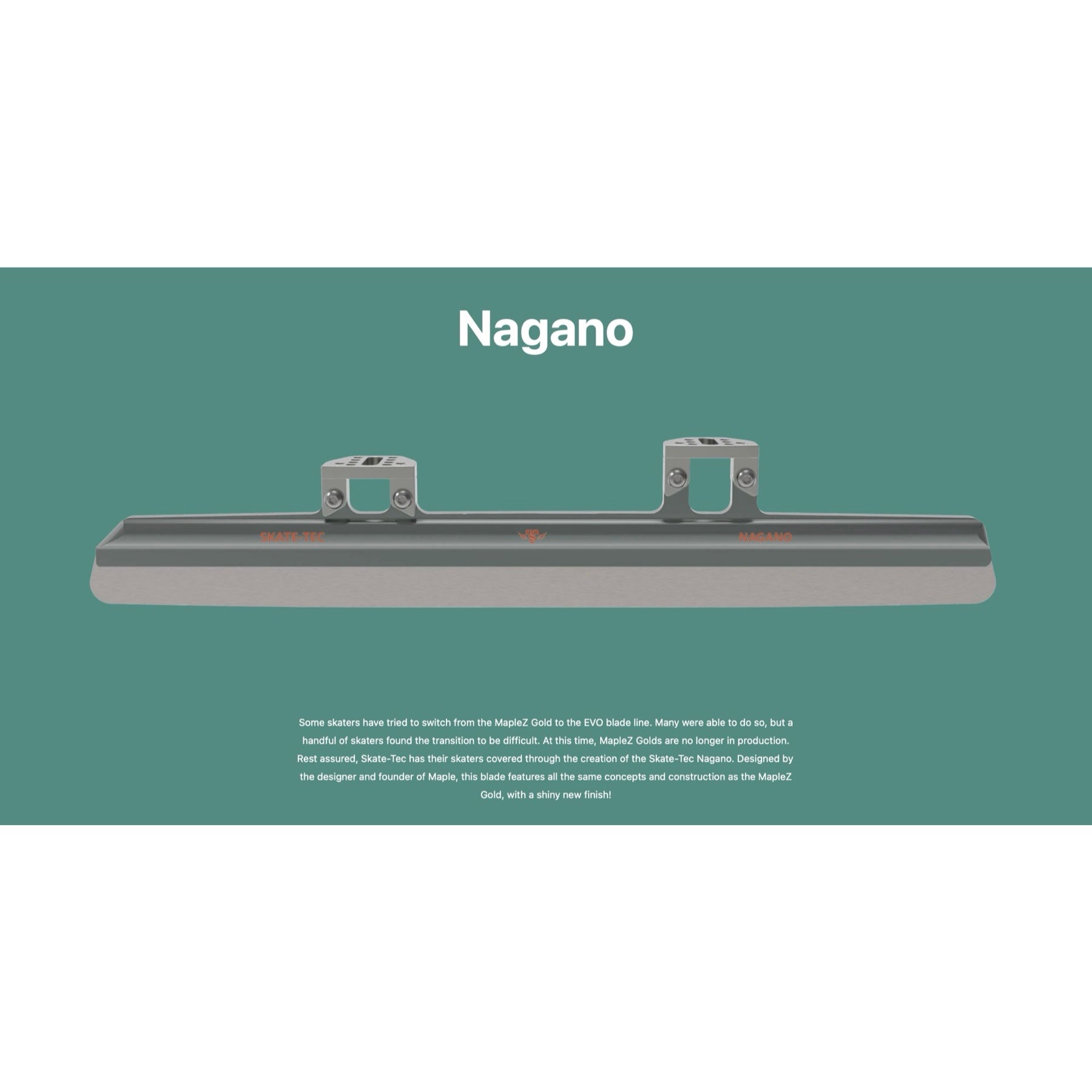 Some skaters have tried to switch from the MapleZ Gold to the EVO blade line. Many were able to do so, but a handful of skaters found the transition to be difficult. At this time, MapleZ Golds are no longer in production. Rest assured, Skate-Tec has their skaters covered through the creation of the Skate-Tec Nagano. Designed by the designer and founder of Maple, this blade features all the same concepts and construction as the MapleZ Gold, with a shiny new finish!